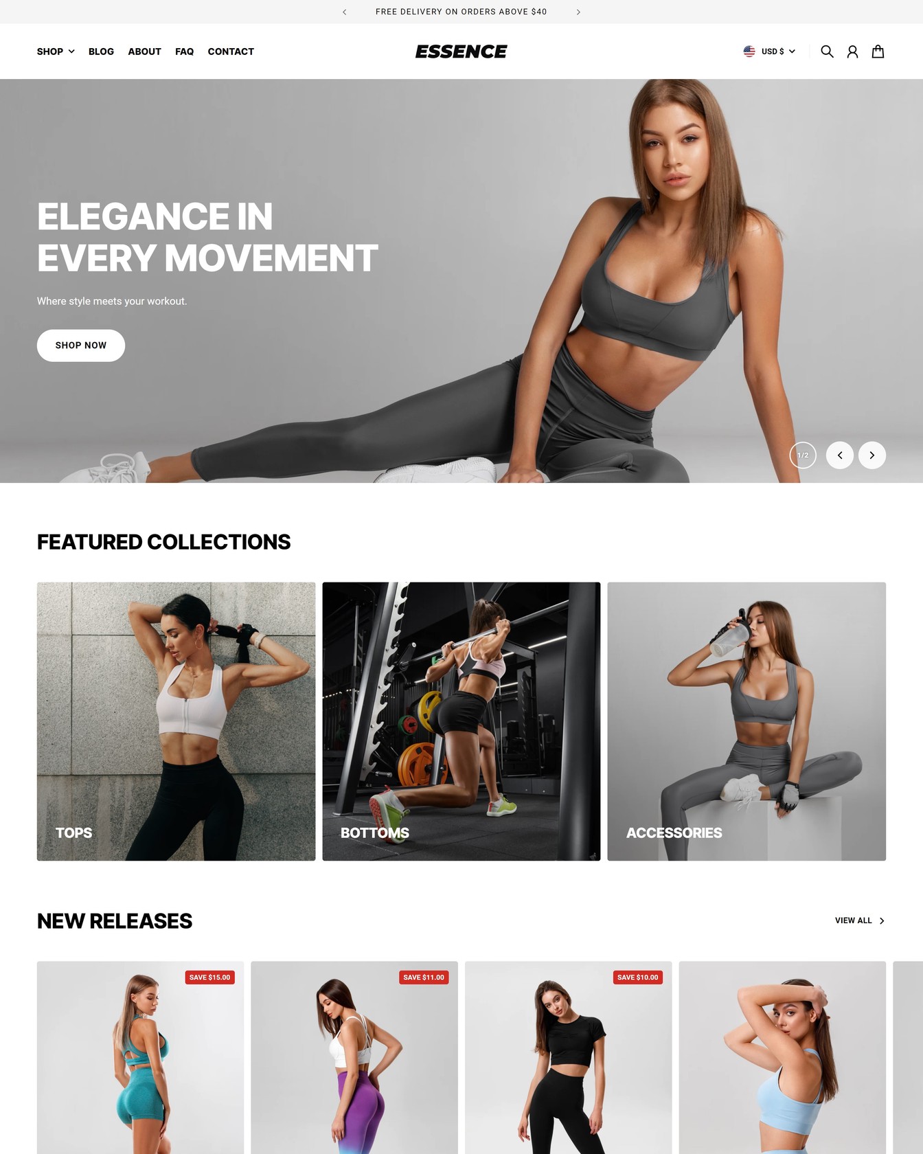 Essence is a clean, feature-rich theme designed for brands looking to connect with their audience through brand storytelling, beautiful photography, and detailed product pages. It offers top-tier performance and includes features designed to optimize conversion rates.